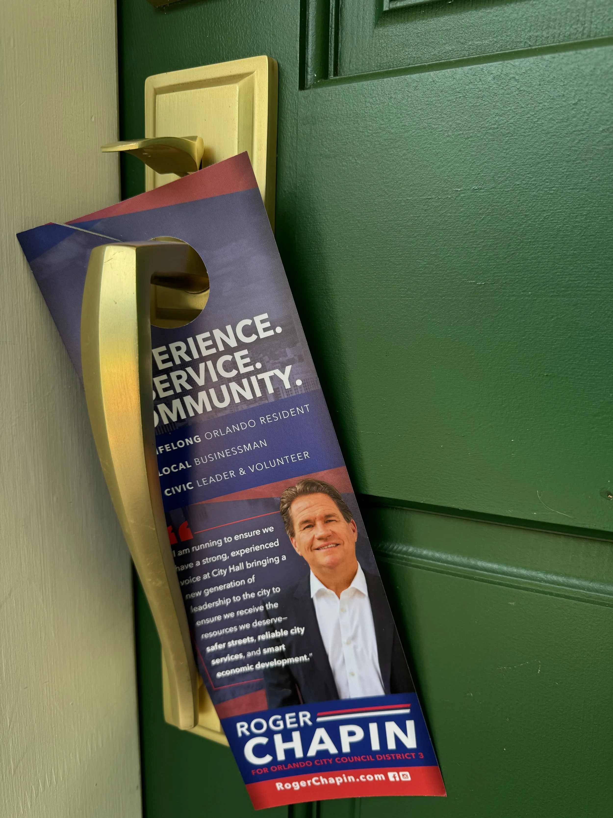So over the past few weeks, our campaign team has been targeting “likely voters”. So maybe you met Roger, or met a volunteer or saw a door hanger left behind? No matter what, feel free to 1) reach out with questions or comments or 2) request an absentee ballot from the Supervisor of Elections. Our door hangers provide an important QR code for you, and here is the link as well: https://www.ocfelections.gov/vote-by-mail